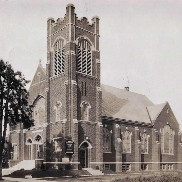 From 1905 on, the congregation grew steadily. Initially, the mission congregation held its English worship services in St. John’s Church. After about a year, plans were drafted to build their own place of worship. In the spring of 1906, ground was broken at the corner of Milwaukee Avenue (now Dr. M. L. King, Jr. Drive) and Albert Street. On May 20, 1906, the cornerstone was laid. This new church, constucted and furnished at a cost of $7,500, was dedicated on September 9, 1906. During the next few years several amenities were added, including new furnishings, stained glass windows and a pipe organ.